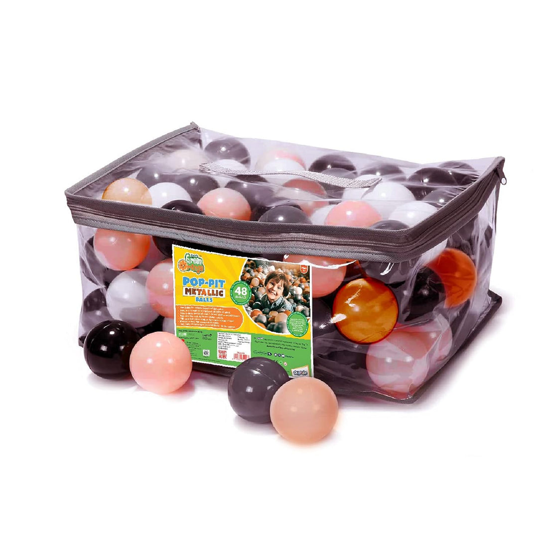 Shiny Metallic Pop-Pit Balls – Includes 50 metallic balls in vibrant green and orange colours,...