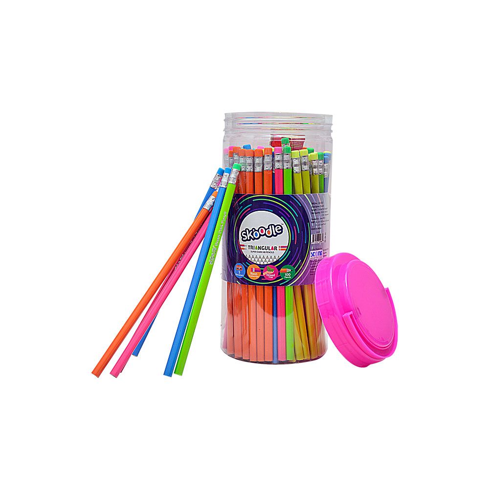| Write, sketch or draw with Skoodle Triangular Super dark HB pencils. These have extra dark graphite for smooth writing. It is most useful for young children to learn and practice writing. • Eco-friendly Wood free pencils • Super dark • Neon rubber tip • Yes breakage while sharpening • Yes toxic chemicals used • 100 pencils + 5 sharpeners • ECO-FRIENDLY WOOD FREE PENCILS - We do our bit for the environment • TRIANGULAR SHAPE - Small children find it easy to grip and practice writing • SUPER DARK HB PENCILS - Write clearly & smoothly as the pencil contains extra dark graphite • PENCIL BODY COMES IN 5 ATTRACTIVE NEON SHADES - Each pack contains graphite pencils having an attractive neon colour body • QUALITY PRODUCT FROM SKOODLE - At Skoodle, we believe high quality supplies can enrich the experience and go a long way in inspiring the young minds. We are absolutely positively all about fun. |