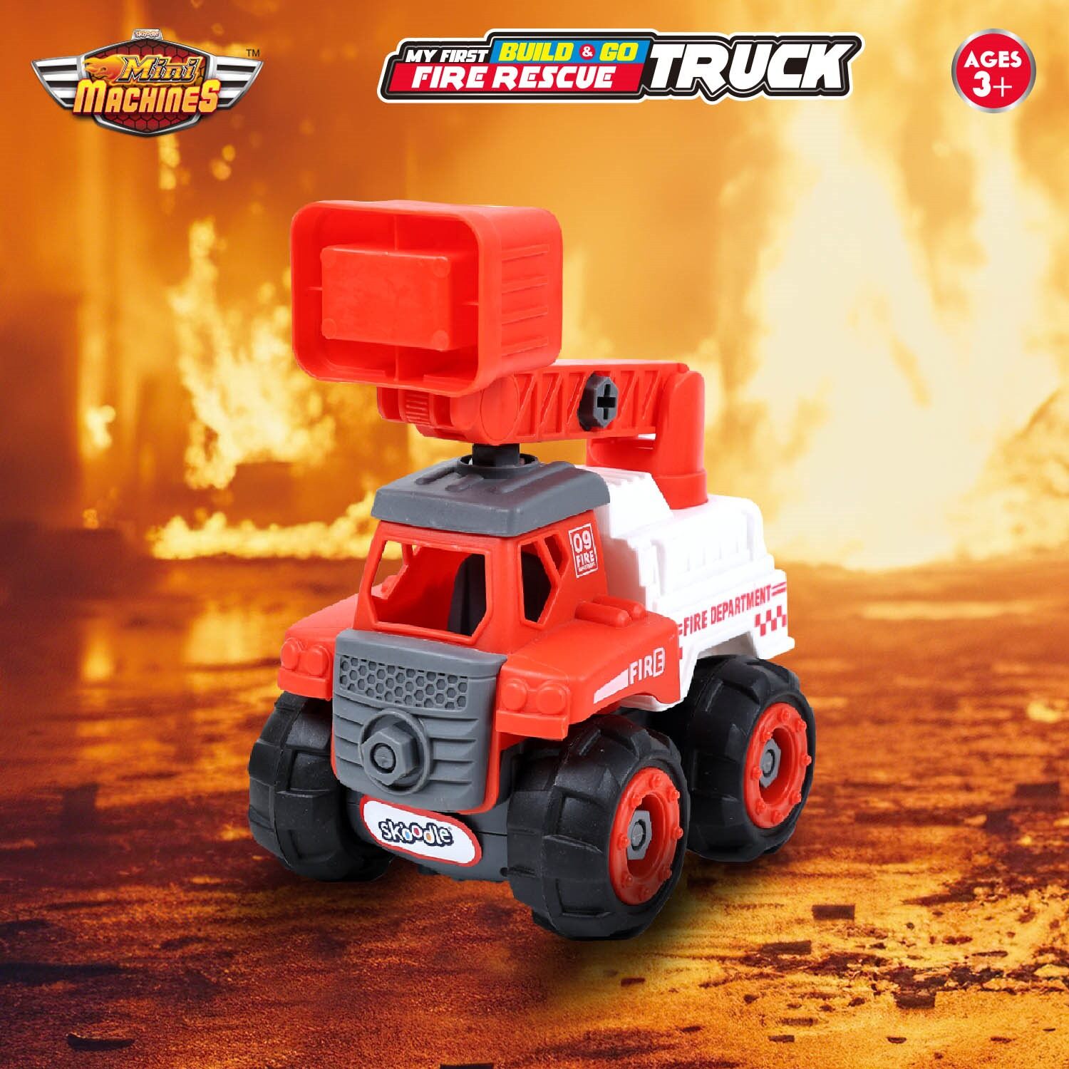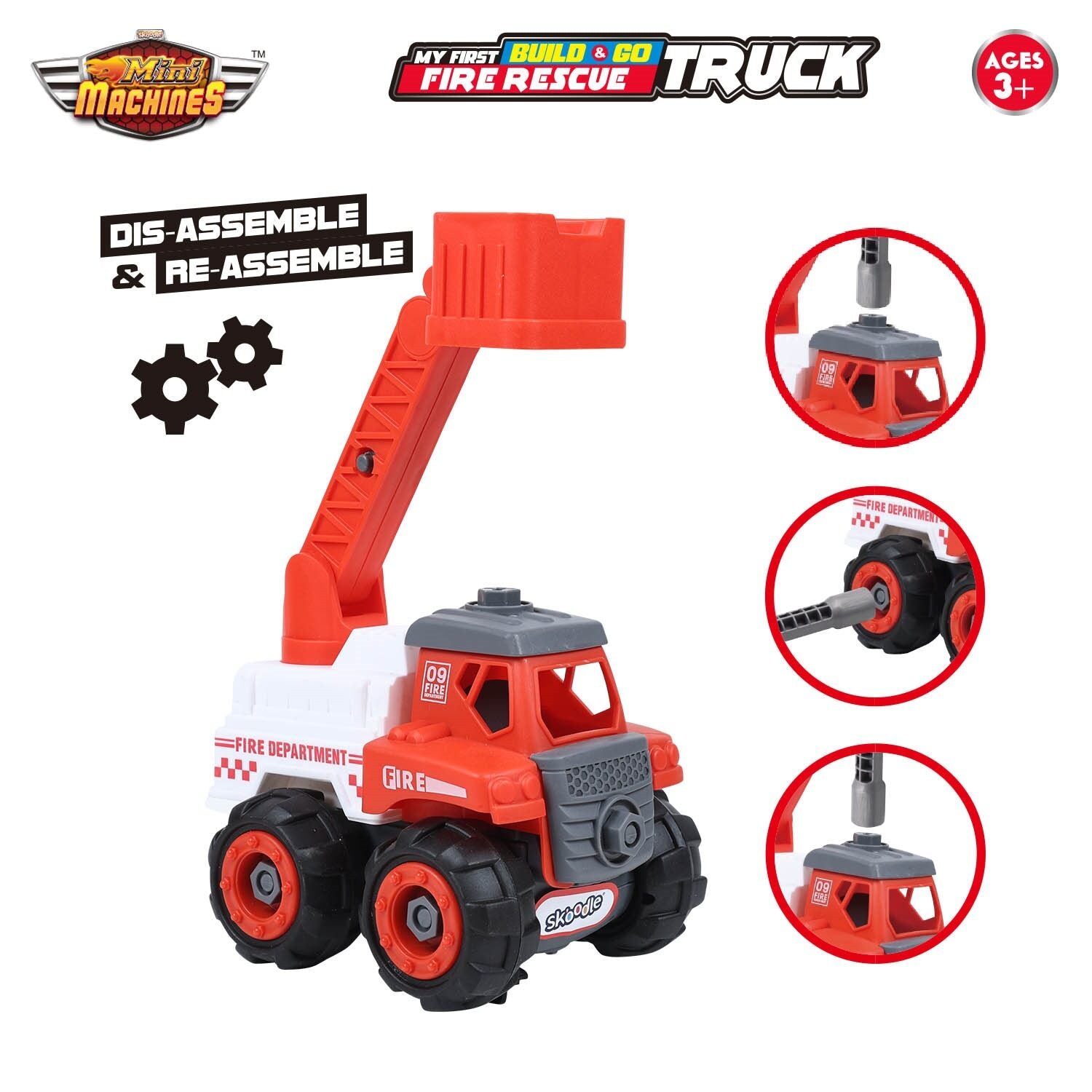 Skoodle Mini Machines Build & Go Fire Rescue Truck - White