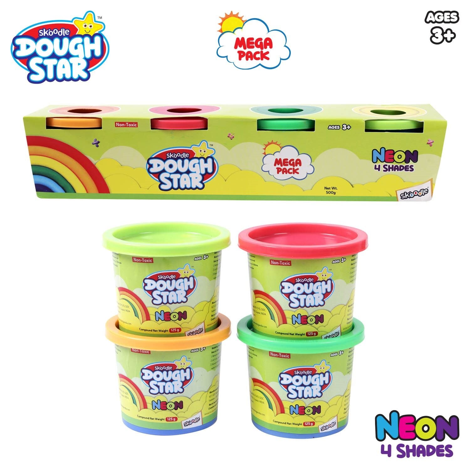 Skoodle Dough Star Mega 125 Gm - Pack Of Neon