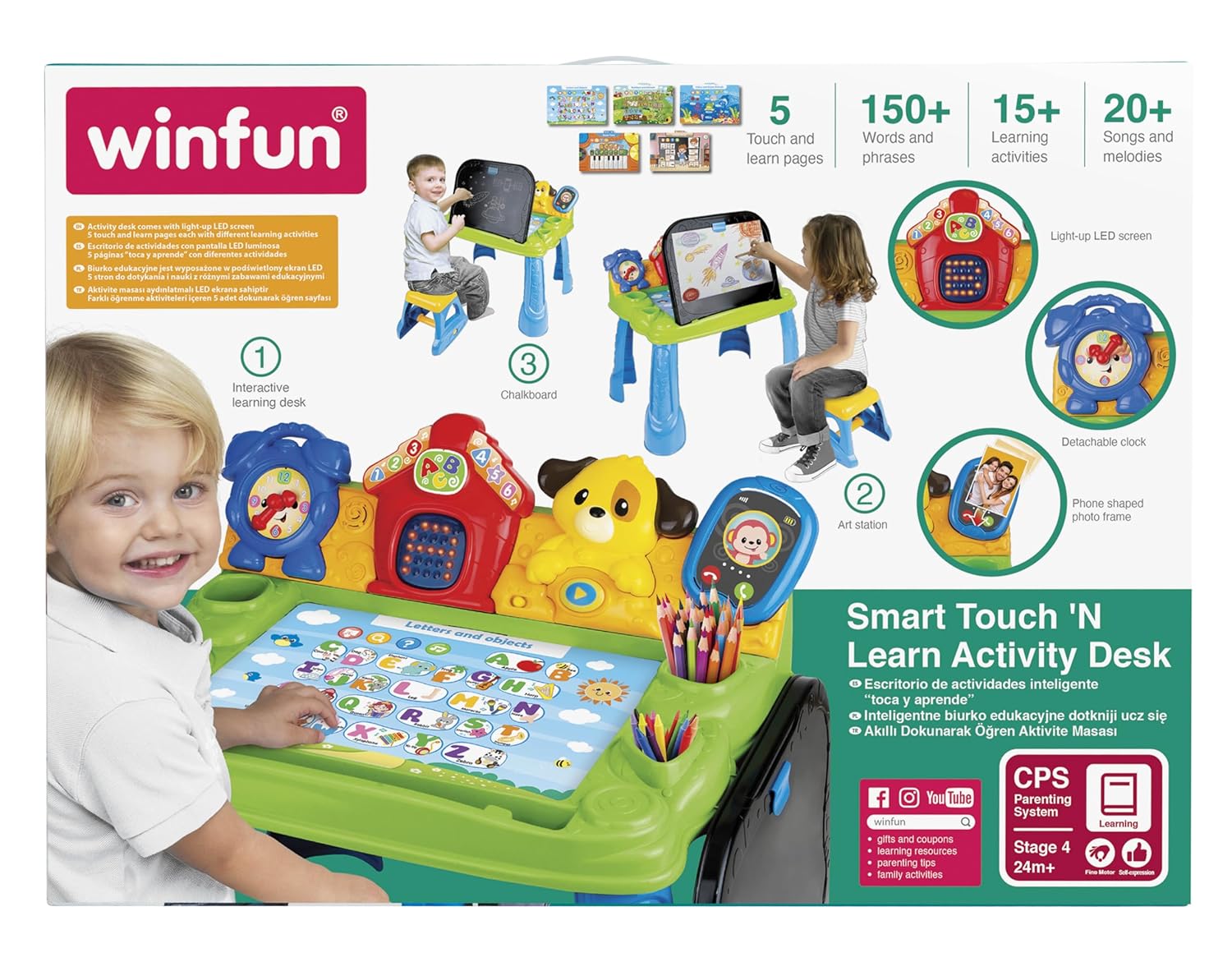 - Activity desk comes with 150+ words and phrases, 15+ learning activities, and 20+ songs and melodies; 5 touch and learn pages each with different learning activities