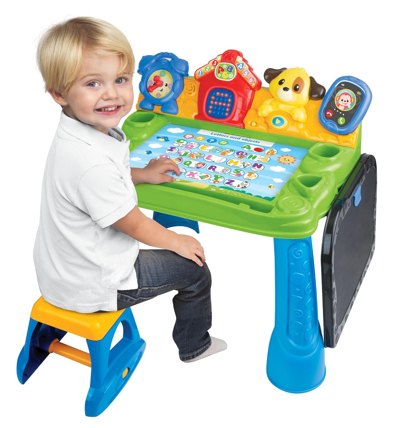 - Touch, draw, learn and write on this engaging activity desk with stool